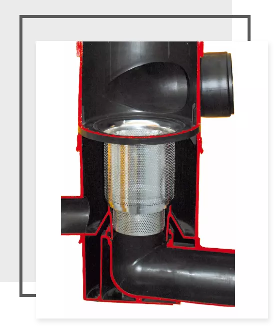 The infiltration sieve is additionally inserted into the vortex fine filter if the residual water is not to be led to the canal but to an infiltration system. It catches the dirt and thus keeps the infiltration system functional.