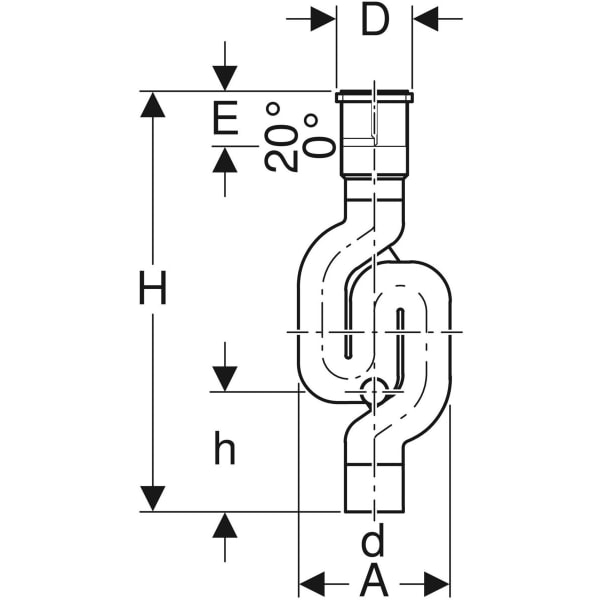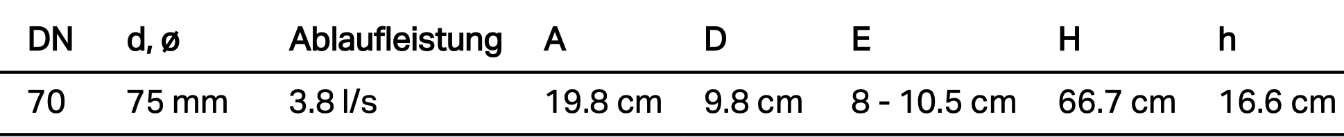 Το σχήμα του σιφονιού ως σκουληκοπαγίδα προσφέρει συμπαγή σχεδιασμό που μπορεί να ενσωματωθεί με τον καλύτερο δυνατό τρόπο σε υπάρχοντα συστήματα. Με ονομαστική διάμετρο DN 70 και εξωτερική διάμετρο 75 mm, το προϊόν είναι ευέλικτο. Άλλες διαστάσεις, όπως η προεξοχή των 19,8 cm και το βάθος εισαγωγής από 8 έως 10,5 cm, υπογραμμίζουν τον εξελιγμένο σχεδιασμό.