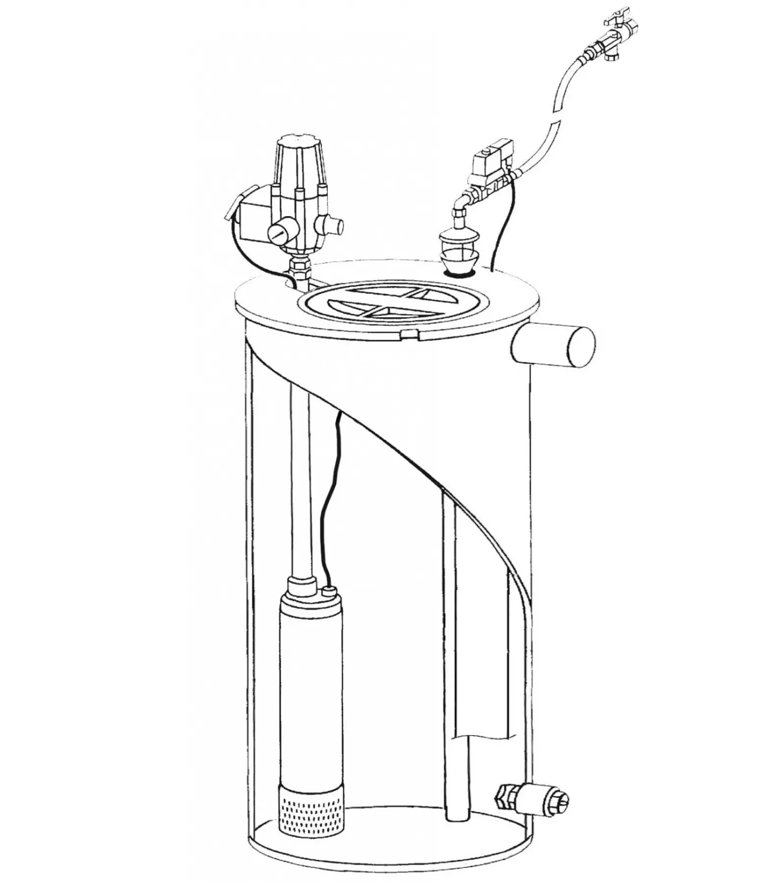 - Teljesen automatikus esővízegység 2-4 háztartás esővízzel való ellátására