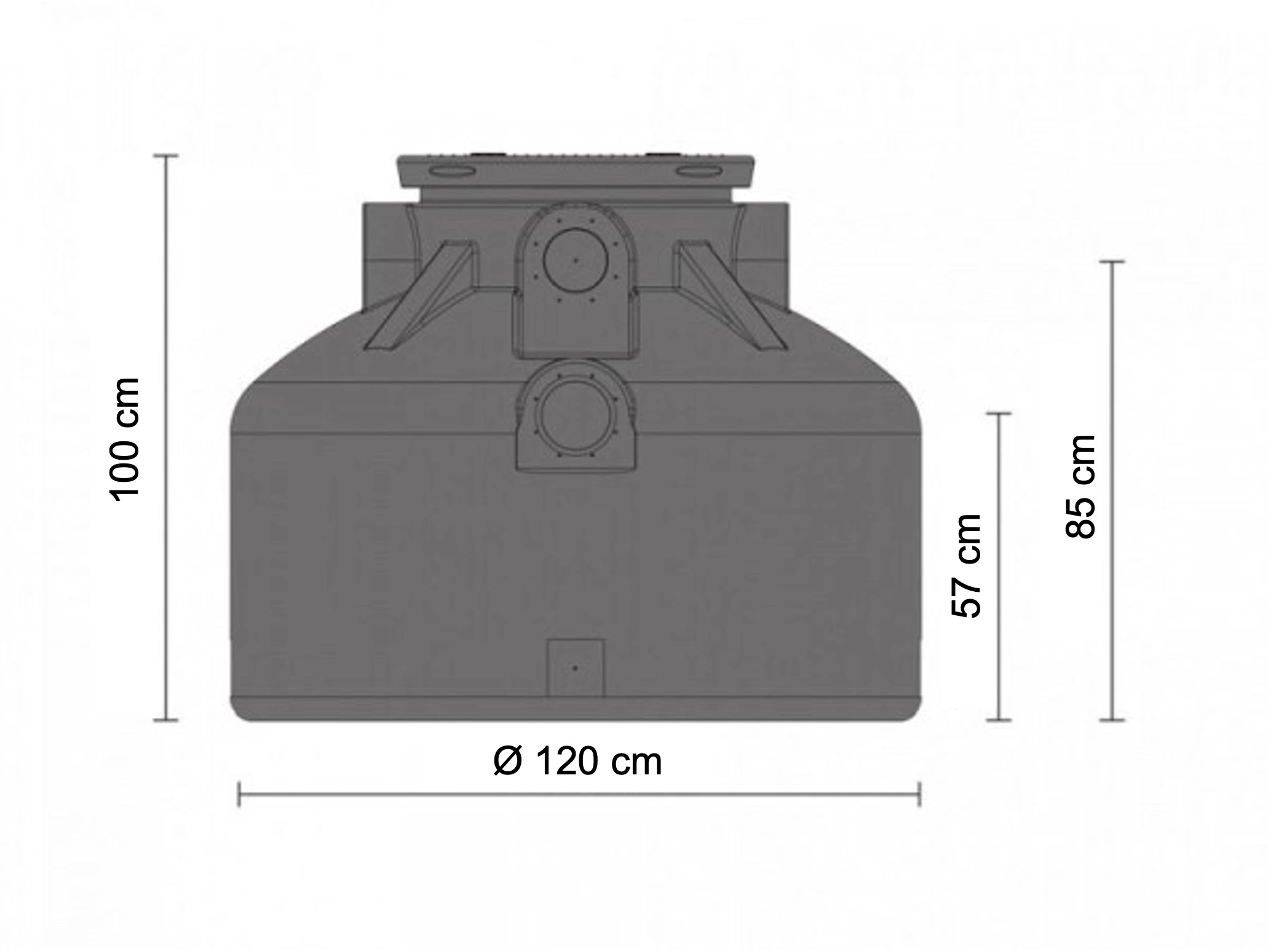 직경 120cm, 높이 100cm의 이 탱크는 지하에 쉽게 설치할 수 있습니다. 직경 55cm, 입구가 48cm인 맨홀 돔으로 쉽게 접근할 수 있습니다. 녹색 탱크 뚜껑은 나사로 고정할 수 있고 이중 벽으로 단열되어 있으며 스테인리스 스틸 어린이 안전 잠금 장치가 장착되어 있어 더욱 안전합니다.
