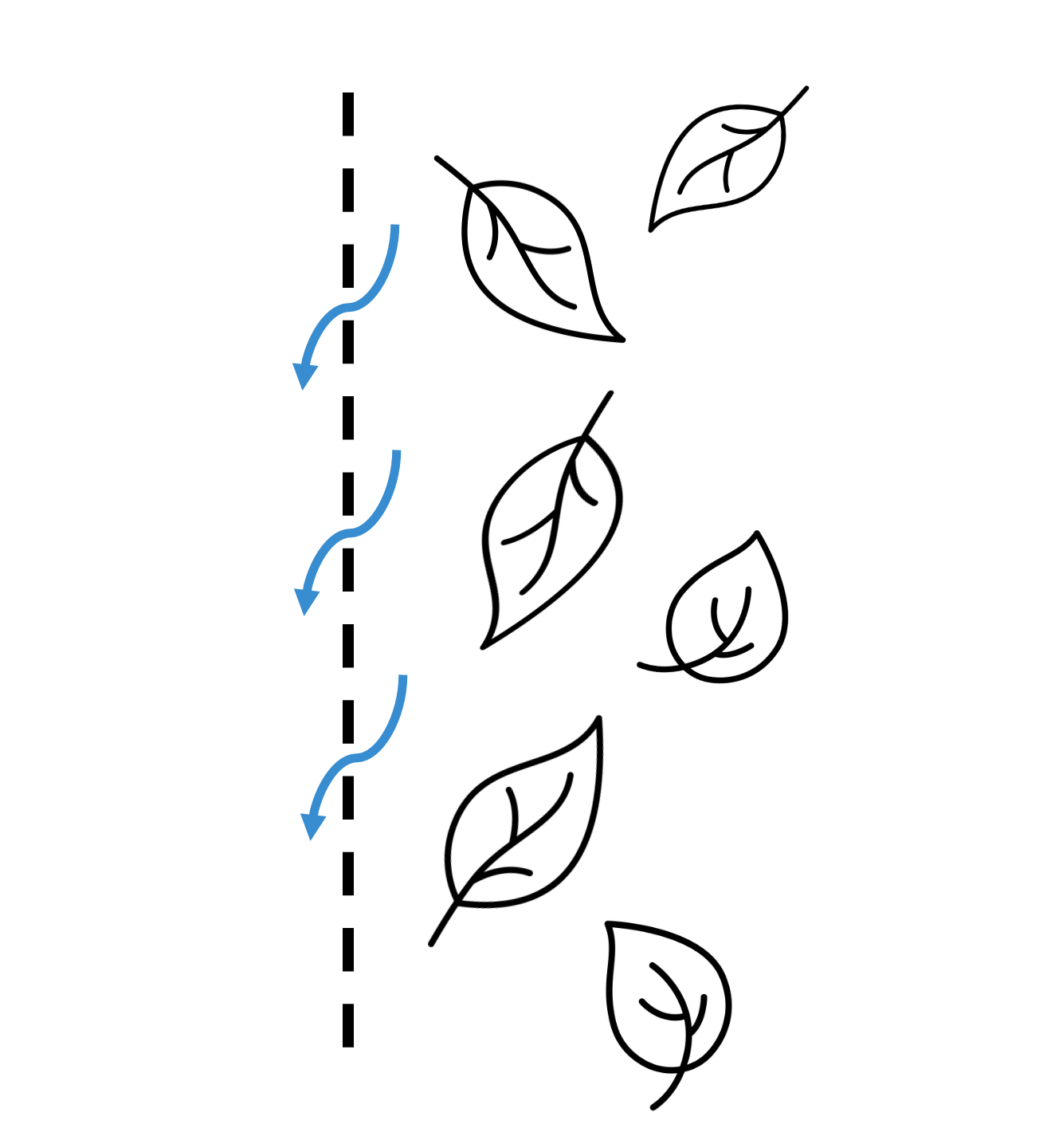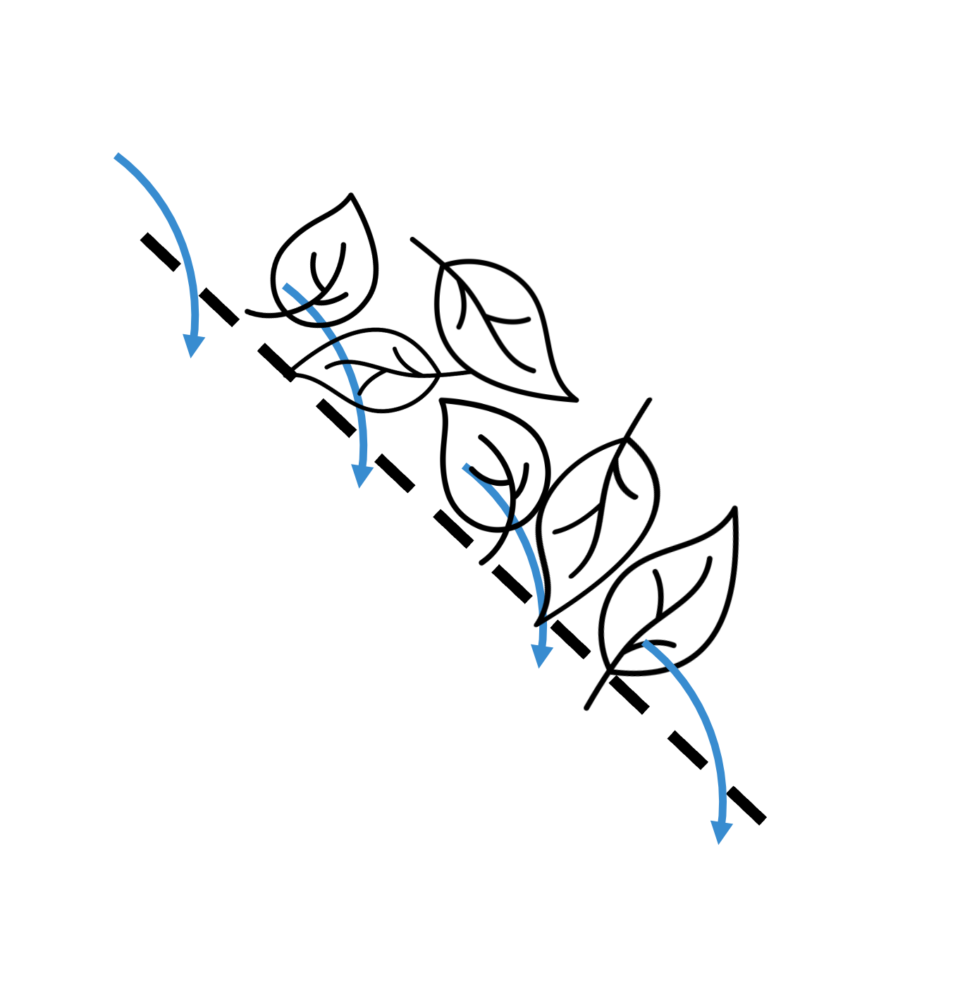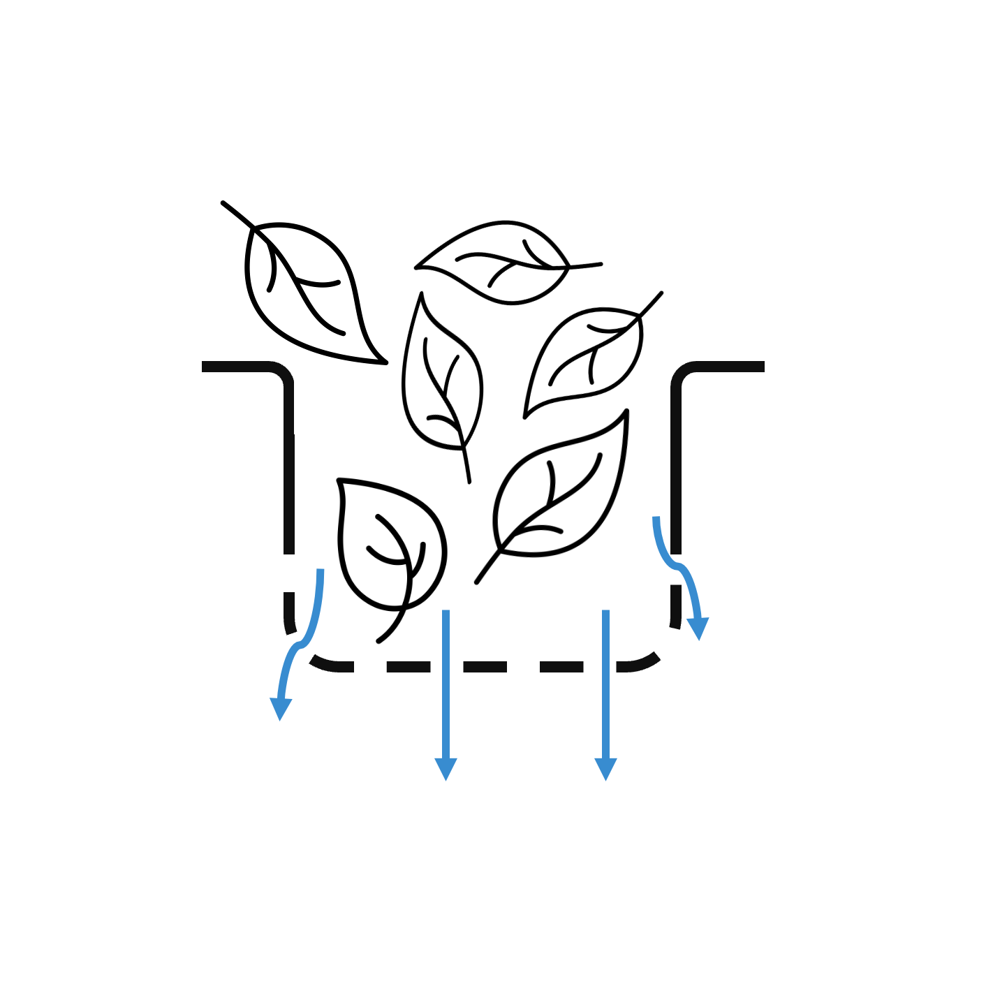 Filtry do wody deszczowej WISY mają pionową siatkę filtracyjną. Liście, mech lub inne ciała stałe po prostu spadają obok niej i są spłukiwane z niewielką ilością pozostałej wody. W rzeczywistości zmieniamy kierunek przepływu wody poprzez naturalny efekt, bez odchylania lub zatrzymywania cząstek i zanieczyszczeń.