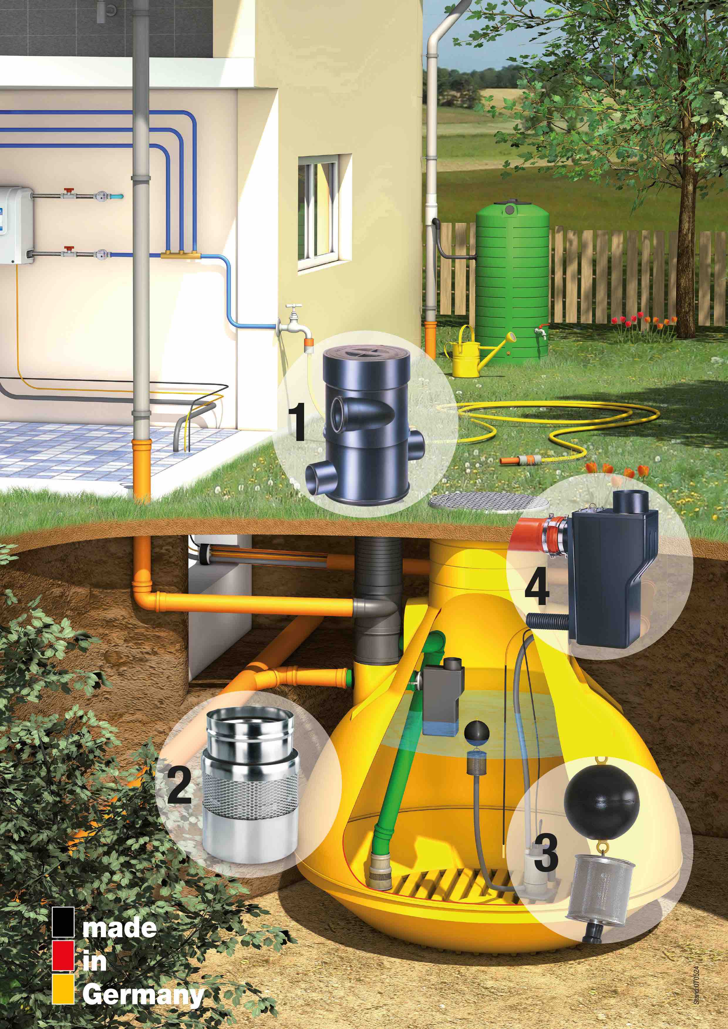 Um Regenwasser im Haushalt oder für den Garten zu nutzen, muss das Regenwasser richtig gefiltert, gelagert und entnommen werden. Wer dem WISY 4-Stufen System folgt, hat garantiert sauberes Regenwasser, das langfristig gelagert werden kann und stets zur Nutzung bereit ist.
