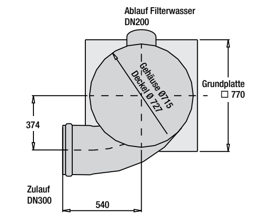 Вихревой фильтр тонкой очистки 300 устанавливается ниже уровня земли в горизонтальном водопроводе. Он фильтрует дождевую воду, поступающую сбоку, а также направляет ее в боковую часть цистерны. Его фильтрующая вставка изготовлена из мелкой сетки из нержавеющей стали с размером ячейки всего 0,38 мм. Благодаря этому листья, мох и прочий мусор надежно отделяются и смываются вниз, в водоприемник.