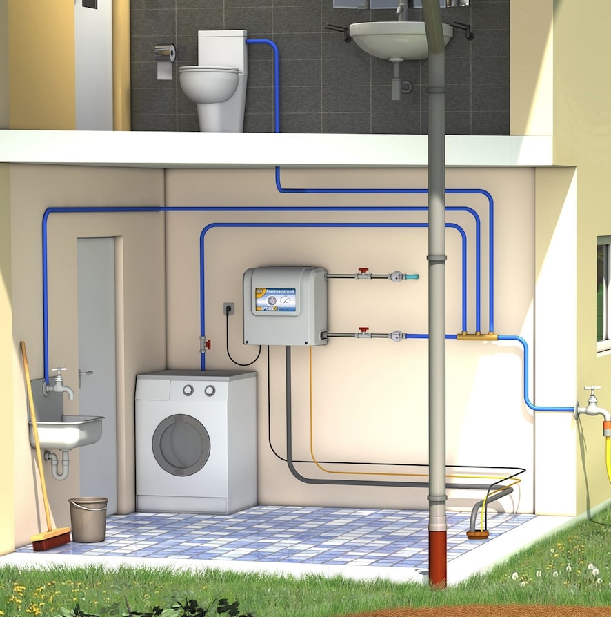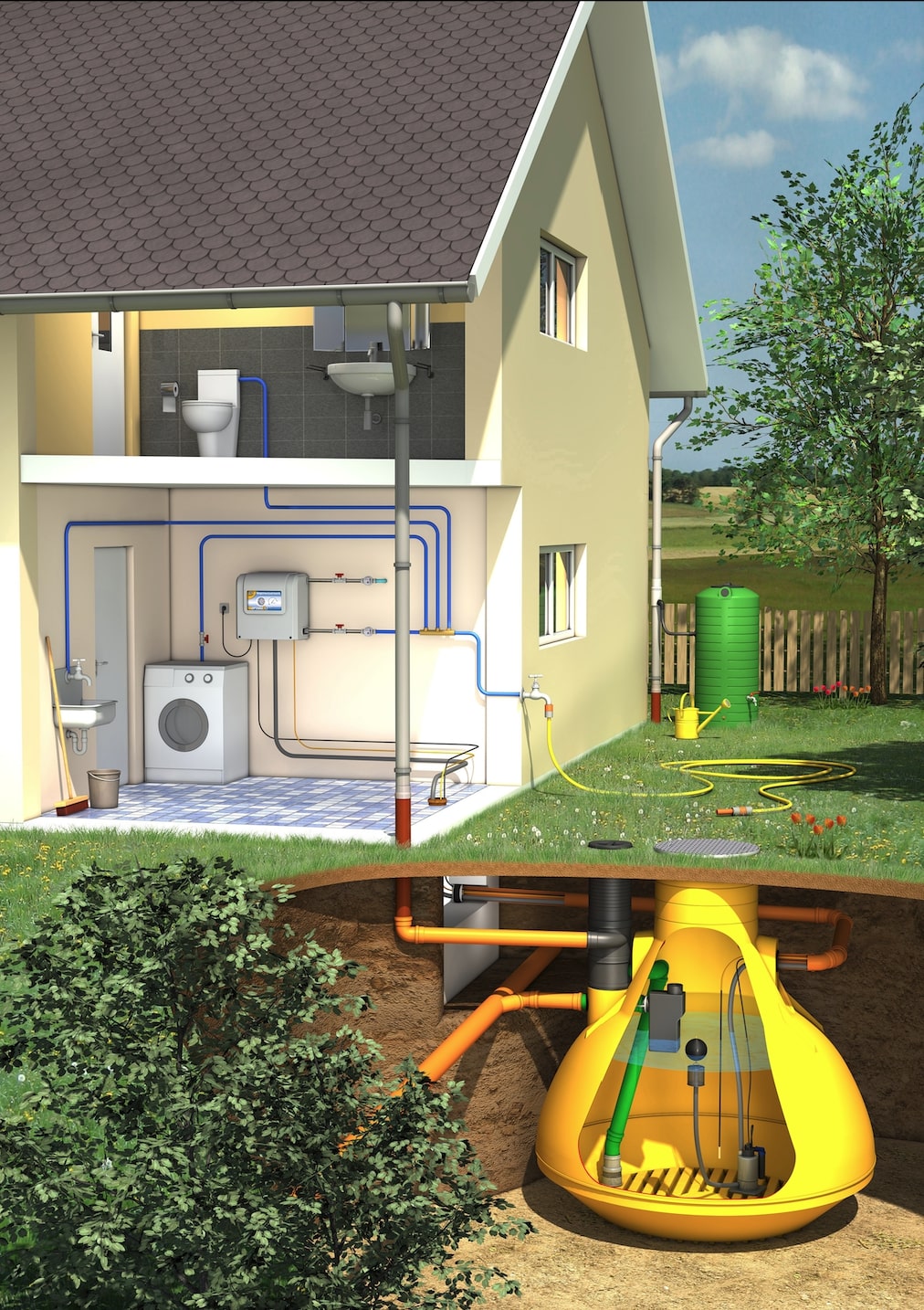 Полностью автоматическая водосточная установка Sigma для подачи дождевой воды в отдельно стоящий дом.