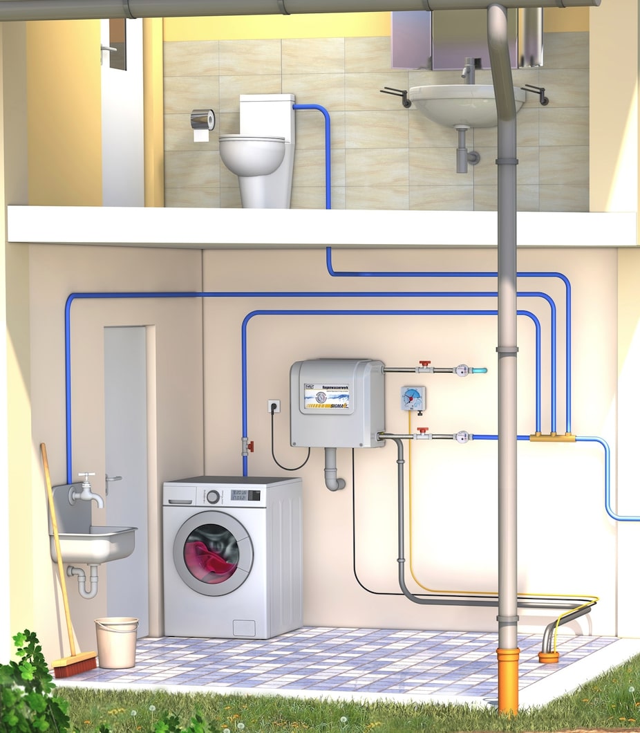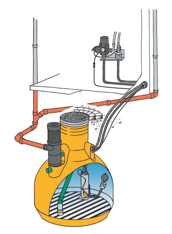 Водосточный блок объединяет все необходимые для работы компоненты в одном устройстве, перекачивает воду из накопительного бака и подает ее под давлением в сеть водосточных труб.
