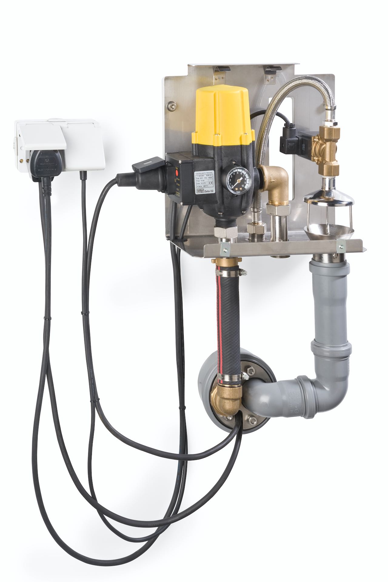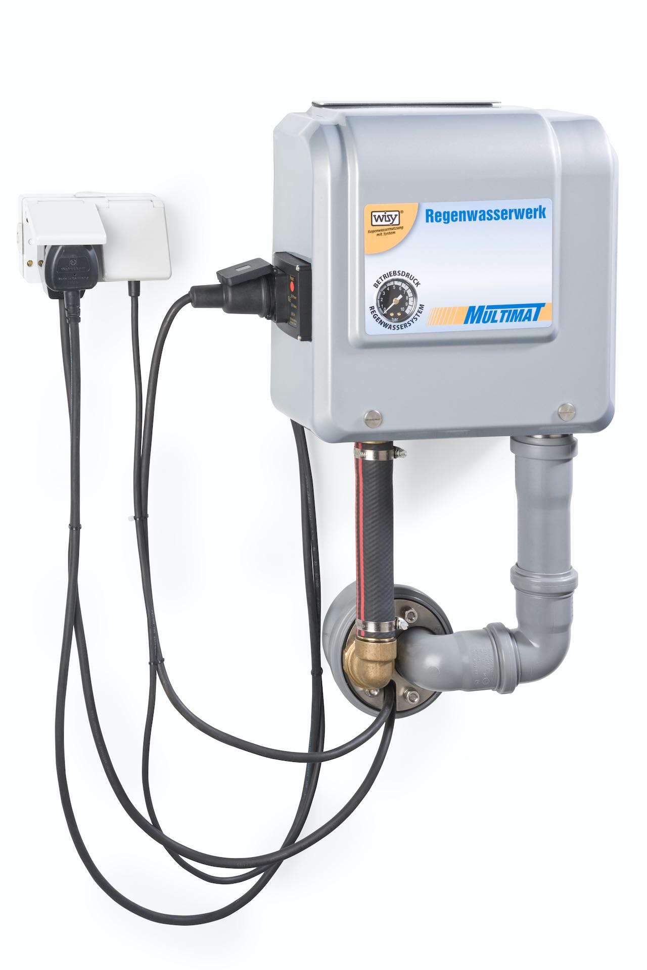 Устройство для дождевой воды Multimat работает с двумя отдельными кабелями от бачка до настенного блока. Это обеспечивает простоту установки и долговременную надежность в эксплуатации. На объекте необходимо предусмотреть две розетки.