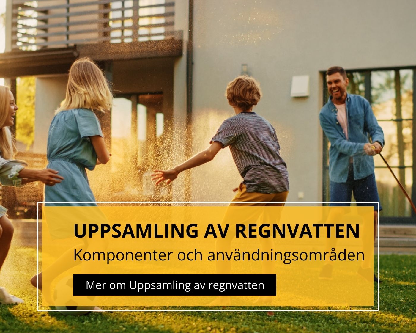Regnvattenenheten hämtar vatten från cisternen. Om cisternen är tom under torra perioder övergår den automatiskt till att använda kranvatten. Regnvattenenheter garanterar en oavbruten försörjning av bruksvatten