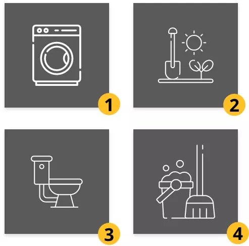 Deževnico lahko uporabljate na različne načine, da zmanjšate potrebo po javni vodi v gospodinjstvu. Prihranki vode iz vodovoda v nemškem gospodinjstvu se lahko razdelijo na naslednji način: